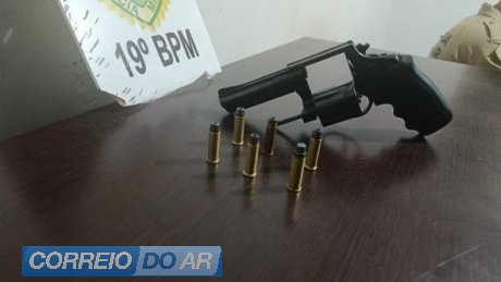 Nas buscas no interior do veículo, os agentes localizaram atrás do banco do motorista um revólver calibre .38, marca Rossi, carregado com seis munições intactas. A arma estava com a numeração suprimida.