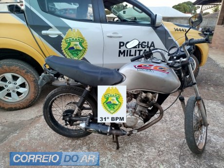 Na tarde da última terça-feira (22), por volta das 17h40, uma equipe policial realizava patrulhamento de rotina em Terra Roxa quando visualizou uma motocicleta transitando sem placa de identificação.