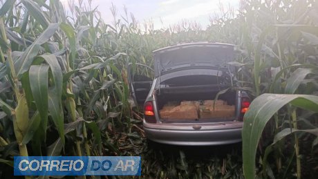 Condutor abandona Corsa com maconha e foge no milharal na PR-239, na região Oeste