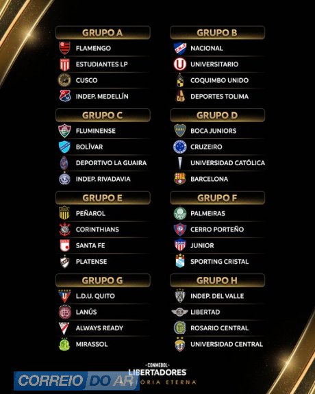 Conmebol sorteia grupos da Copa Libertadores 2026