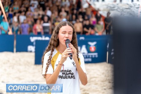 Das pistas de atletismo para a areia da praia de Caiobá, a paranaense Isadora Venâncio, que é destaque no cenário mundial do paratletismo, mostrou talento e versatilidade ao soltar a voz e cantar o Hino Nacional no Desafio Olímpico de Vôlei de Praia. Realizado neste domingo (11), o evento abriu a programação do esporte na Arena Esportiva Verão Maior em Caiobá, reunindo os campeões olímpicos Giba, Serginho, Dante e Rodrigão em um jogo para lá de animado.