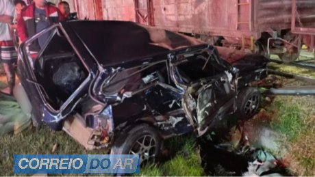 Duas pessoas ficam feridas após carro ser atingido por trem