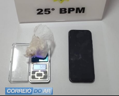 Após um acompanhamento tático, os policiais conseguiram abordar a dupla cerca de um quilômetro adiante. No ponto onde o objeto havia sido jogado, foi localizado um invólucro contendo 52 gramas de substância análoga à cocaína. Um celular também foi apreendido com os suspeitos.
