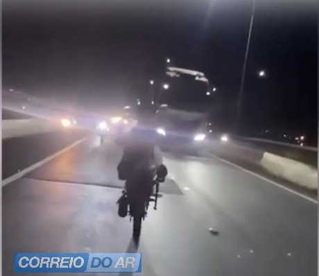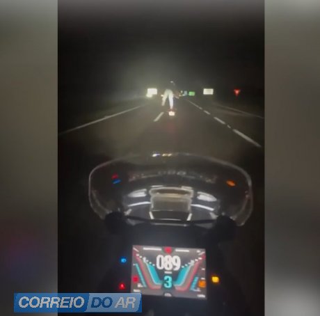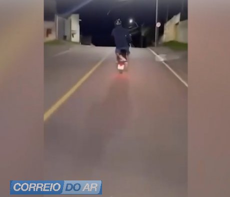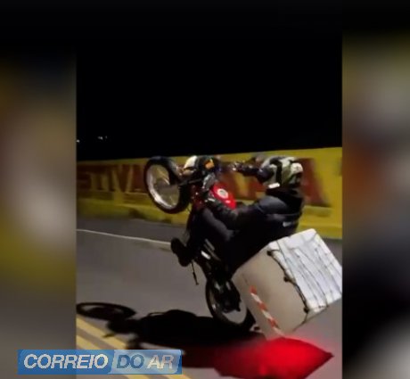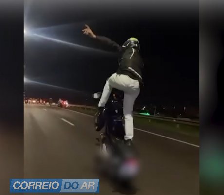 As imagens mostram diferentes situações de risco. Em um dos registros, um homem aparece em pé sobre a motocicleta, apoiado em apenas um dos pés, com a outra perna levantada enquanto o veículo segue em movimento. Em outro vídeo, um motociclista empina a moto em trecho que aparenta ser rodovia, dividindo espaço com outros veículos.