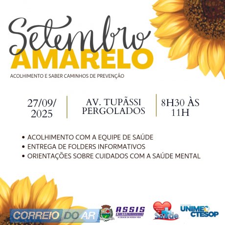 A Prefeitura de Assis Chateaubriand, por meio da Secretaria de Saúde e do Centro de Atenção Psicossocial (CAPS), realizará o encerramento da Campanha Setembro Amarelo, iniciativa voltada à conscientização sobre a valorização da vida e à prevenção ao suicídio.