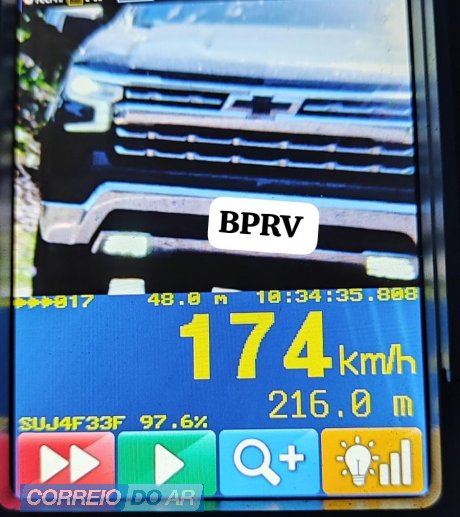 Durante três horas de operação, os agentes flagraram 114 veículos circulando acima do limite permitido. Entre os casos mais graves, um motorista foi registrado a 174 km/h, quase o dobro da velocidade autorizada na via.