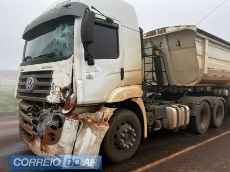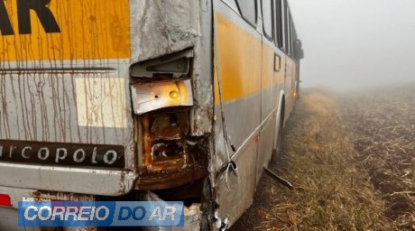 Forte neblina causa acidente com ônibus, moto, carro e carreta na BR-163 em Quatro Pontes