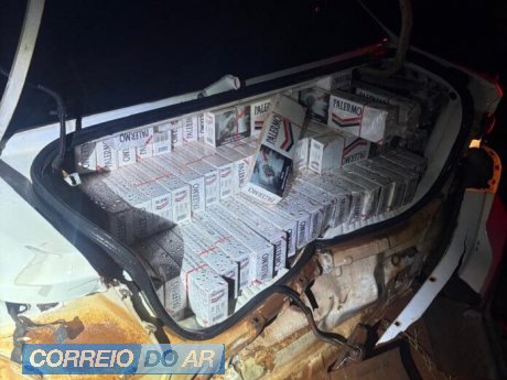 Na sequência, o veículo foi abordado em uma estrada rural. O motorista abandonou o automóvel e fugiu a pé em direção a uma área de mata, não sendo localizado até o momento. Durante a vistoria no interior do carro, a equipe encontrou aproximadamente 500 pacotes de cigarros da marca Palermo, todos de origem paraguaia, caracterizando o crime de contrabando.