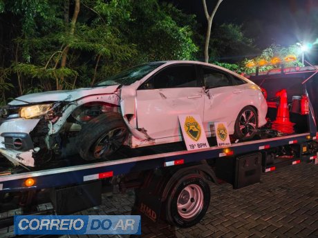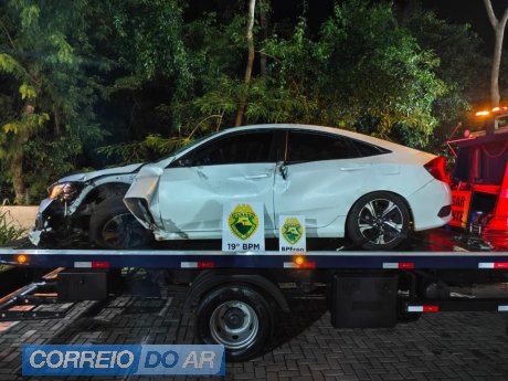 Ao perceber a tentativa de abordagem, o condutor acelerou e iniciou fuga em alta velocidade, trafegando inclusive pela contramão da rodovia. Durante o acompanhamento, o veículo acabou colidindo contra uma placa no trevo de entrada da cidade.