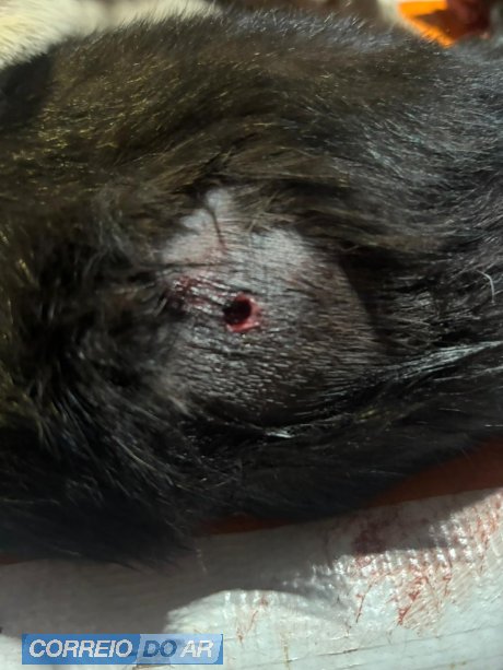 O animal apresentava um ferimento compatível com projétil. Não foi possível confirmar se o disparo partiu de arma de fogo ou de pressão. A gata foi socorrida e encaminhada para atendimento veterinário.