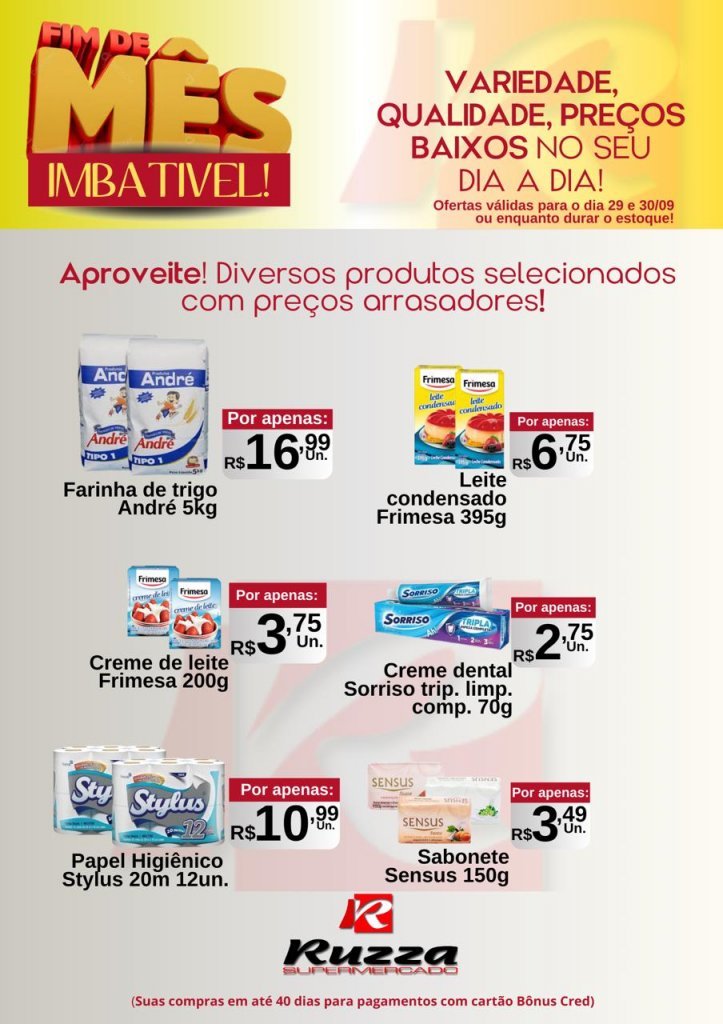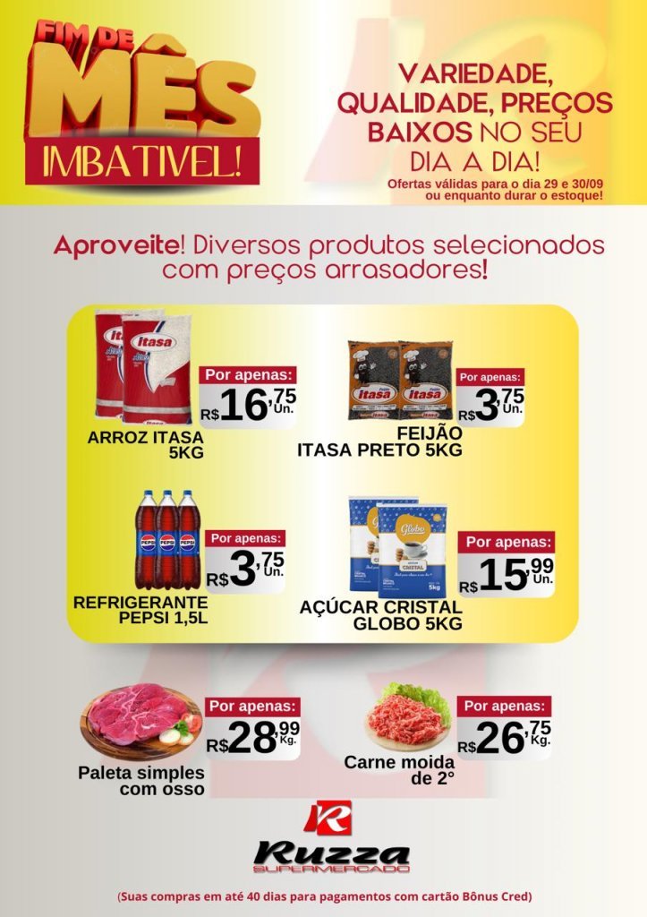 Hoje é o último dia para aproveitar as ofertas do Fim de Mês Turbinado no Supermercado Ruzza de Palotina