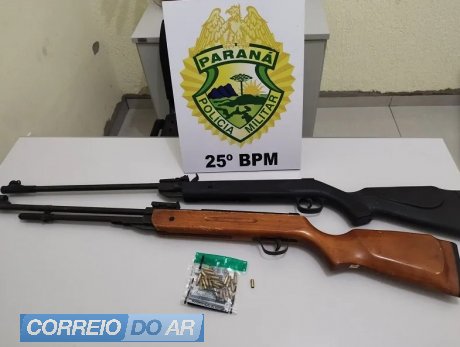 Diante das informações, a equipe policial se deslocou até a residência do suspeito, onde ele foi localizado e abordado. Durante as buscas no local, foram encontradas armas adaptadas e munições calibre .22, que foram apreendidas.