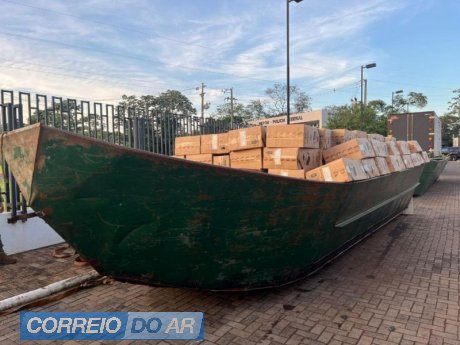 A equipe de fiscalização avistou o barco de ferro partindo do território paraguaio em direção ao Brasil visivelmente carregado. Diante da suspeita, os policiais se aproximarama e confirmaram a prática do ilícito. Na inspeção, foram contabilizadas aproximadamente 400 caixas de cigarros.