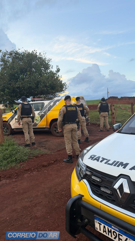 O Ford Del Rey foi encontrado na área rural e deve ser encaminhado para a perícia. A ocorrência segue em andamento, com atuação conjunta da Polícia Militar e da Polícia Civil, por meio da Delegacia da Mulher, que avalia o acionamento de unidades especializadas (Grupo Tigre) para apoio às buscas.