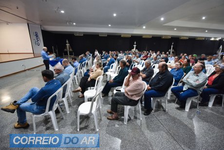A C.Vale vai concluir o ano de 2025 com volumes maiores de recebimento de grãos e mandioca. A esmagadora de soja, que entrou em operação em junho de 2024, deve fechar este ano com o processamento de 16 milhões de sacas de soja. A planta industrial está habilitada a exportar o farelo de soja. As informações estão sendo repassadas pela cooperativa aos associados que participam de uma rodada de reuniões em unidades no Paraná. Em Palotina, o encontro reuniu 125 pessoas, na Asfuca, no dia 29 de outubro. Estiveram presentes o vice-presidente do Conselho de