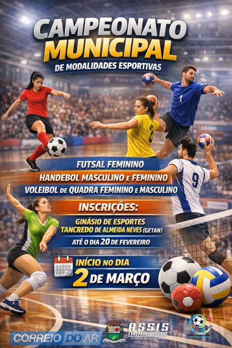 Estão abertas as inscrições para o Campeonato Municipal, que contará com diversas modalidades esportivas, incluindo Futsal Feminino, Handebol Masculino e Feminino, além de Voleibol de Quadra nas categorias Feminino e Masculino. A iniciativa busca promover o esporte e incentivar a prática de atividades físicas entre os moradores do município.