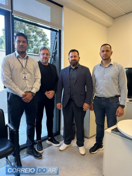 Participaram da reunião: Valdomiro Hrysay, Juan Carlos (superintendente de Planejamento e Inovação), Rodrigo Katarinhuk (gerente de Planejamento) e Alex Almeida, assessor parlamentar do deputado estadual Gugu Bueno.