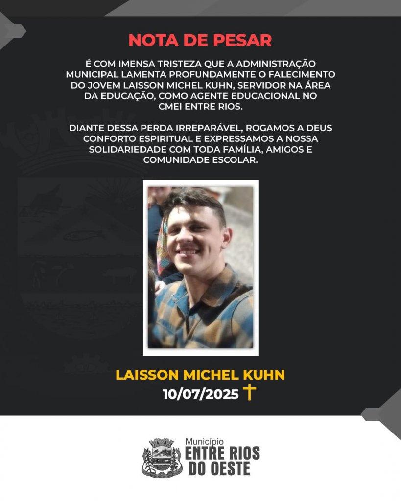 A prefeitura de Entre Rios emitiu uma nota de pesar pelo falecimento do jovem.