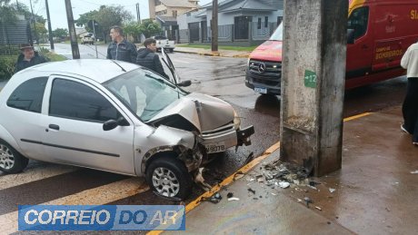 Jovem fica ferida após colidir carro contra poste em Toledo