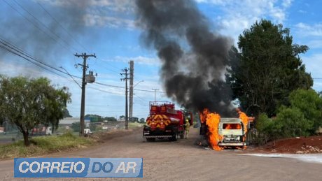 Uma Volkswagen Kombi foi completamente destruída por incêndio na marginal da PRc-467, em Cascavel, no Oeste do Paraná, na manhã desta quarta-feira (12).