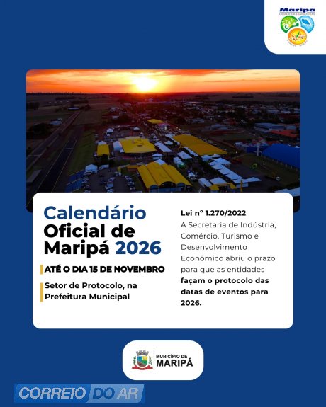 A ação segue o que determina a Lei Municipal nº 1.270/2022, que instituiu o Calendário Oficial de Eventos de Maripá. O objetivo é garantir organização, visibilidade e apoio institucional às atividades de interesse público que contribuem para o desenvolvimento cultural, esportivo, turístico e econômico do município.