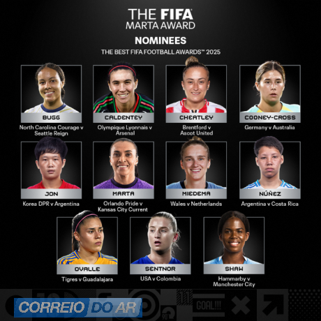A brasileira Marta foi indicada nesta quinta-feira (17) ao prêmio de gol mais bonito da temporada no futebol feminino do Fifa The Best. Desta forma, a Rainha do futebol tentar conquistar novamente a distinção, que garantiu no final de 2024 e que leva o seu próprio nome.