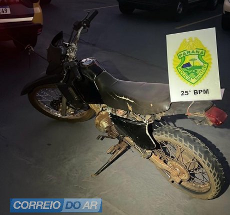 Na tarde de ontem (domingo, 28), a Polícia Militar realizou a apreensão de uma motocicleta adulterada na PR-323, em trecho da zona rural de Iporã, no noroeste do Paraná. A ocorrência foi registrada por volta das 16h25, nas proximidades do conhecido ponto chamado “Cavaco do Ascanio”.