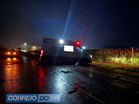 A passageira que estava na motocicleta acompanhou o condutor na ambulância e relatou que ele permanecia consciente durante o atendimento.