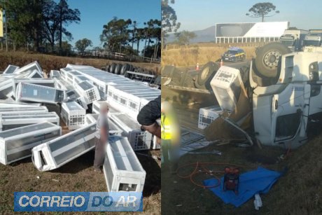 Um grave acidente foi registrado na tarde desta terça-feira (22) na BR-376, no trecho que passa por Tijucas do Sul, na Região Metropolitana de Curitiba. Um caminhão carregado com geladeiras tombou no km 646 da rodovia, no sentido Curitiba, resultando na morte do motorista, de 66 anos.