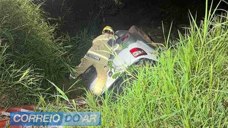 Conforme as informações apuradas no local, o motorista perdeu o controle da direção e o carro caiu em um barranco. A passageira conseguiu sair do veículo antes da queda, enquanto o condutor ficou encarcerado.