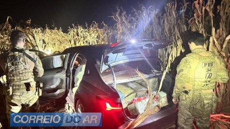 Durante a perseguição, o motorista jogou o carro em uma plantação de milho e fugiu a pé. Apesar das buscas realizadas na região, ele ainda não foi localizado.