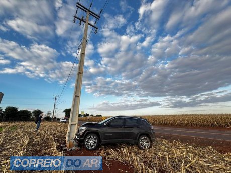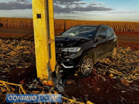 Um Jeep Compass ocupado por dois homens, residentes em Santa Catarina, colidiu contra um poste recentemente instalado em uma curva conhecida por sua dificuldade, na estrada que liga Nova Santa Rosa a Maripá, PR 491 em Novo Blumenau. O acidente aconteceu no final da tarde desta quarta-feira (09), no trecho onde muitos motoristas que não conhecem a via acabam se surpreendendo com a curva acentuada.