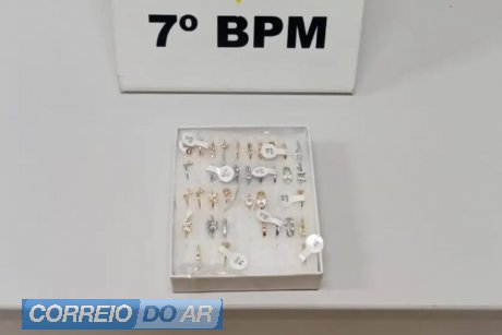 Durante patrulhamento, os policiais encontraram a suspeita no bairro Jardim das Flores, ainda em posse da sacola com os anéis. Ao todo, foram recuperados 36 itens furtados.