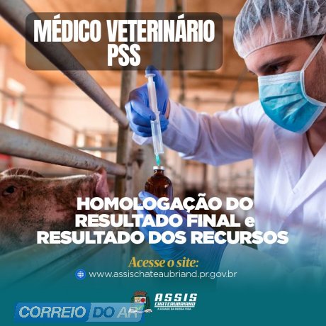 Nesta terça-feira, 17 março, foram publicados no Diário Oficial do Município de Assis Chateaubriand os editais nº 028 e 029/2026 relacionados ao Processo Seletivo Simplificado (PSS) nº 02/2026 de Médico Veterinário.