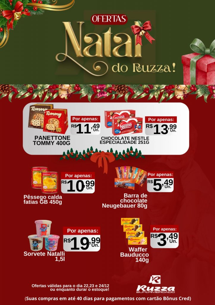 O Natal está chegando, e no Ruzza você encontra tudo o que precisa para preparar uma ceia especial, com qualidade e economia.