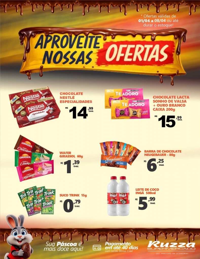 E as ofertas não param por aí: o Saldão do Ruzza continua de 01/04 a 08/04. É a chance de encontrar produtos selecionados com descontos incríveis