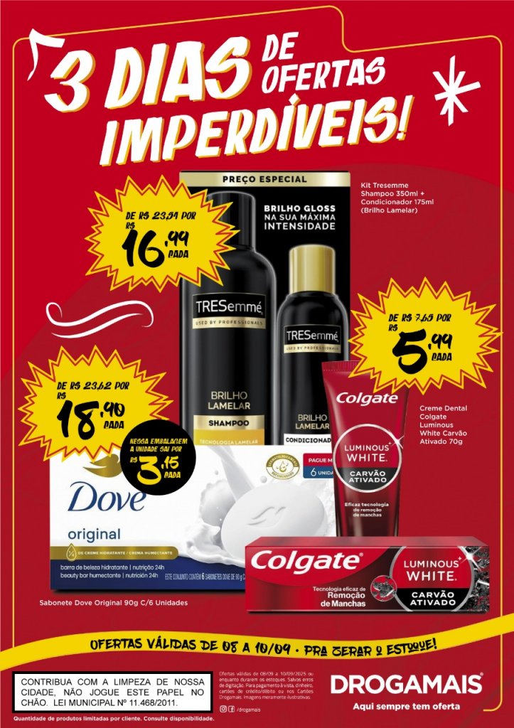 De 08 a 10 de setembro, a DrogaMais preparou 3 dias de ofertas imperdíveis para você aproveitar.