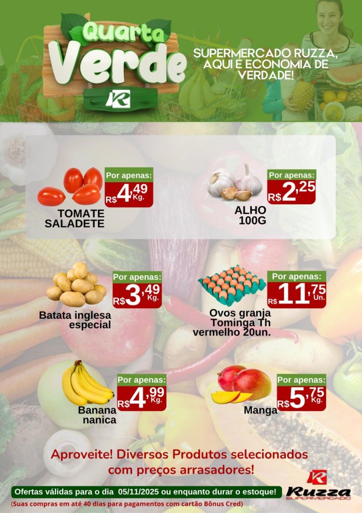 O Supermercado Ruzza preparou ofertas especiais para você nesta quarta (04). Venha e aproveite a Quarta Verde!
