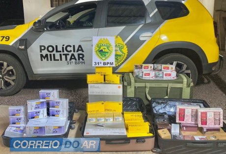 Na noite desta quarta-feira (22), por volta das 23h35min, uma operação policial resultou na apreensão de diversos produtos de contrabando e descaminho em Formosa do Oeste, município localizado no interior do Paraná. A ação ocorreu durante abordagem a um ônibus, quando a equipe policial identificou mercadorias irregulares nas bagagens de quatro passageiros.