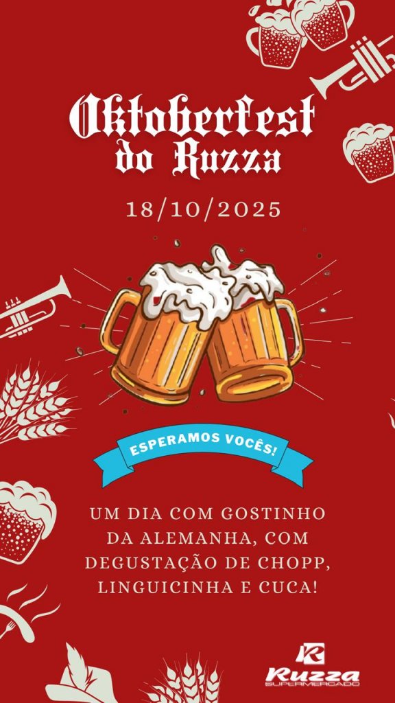 Além das ofertas, neste sábado, 18 de outubro, o supermercado promove a tradicional Oktoberfest do Ruzza, um evento com gostinho da Alemanha, oferecendo degustação de chope, linguicinha e cuca.