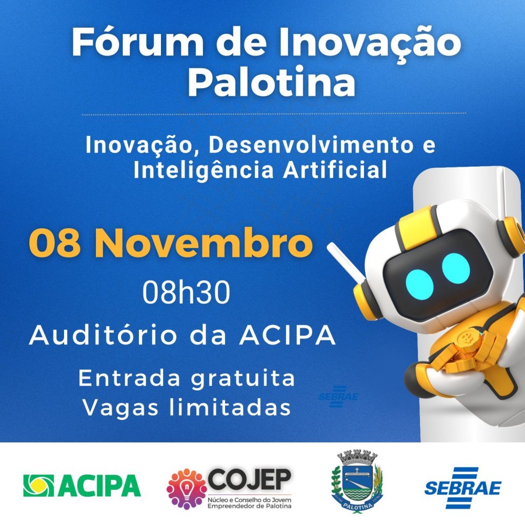 A Associação Comercial, Industrial e Agropecuária de Palotina (ACIPA), em parceria com a Prefeitura de Palotina, Conselho do Jovem Empreendedor (Cojep) e Sebrae, promove no dia 08 de novembro o Fórum de Inovação de Palotina, evento que reunirá especialistas para discutir tendências, oportunidades e caminhos para o desenvolvimento tecnológico e empreendedor do município. A programação inicia às 8h30, no Auditório da ACIPA, com entrada gratuita.