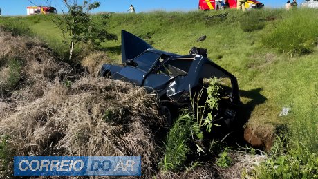 Na tentativa da manobra, os dois automóveis se envolveram em batida. Com a força do impacto, o Uno saiu da pista, capotou em um barranco e parou na canaleta.