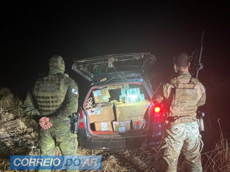 Na madrugada do dia 27/9, Policiais Federais,em ação integrada com Policiais Militares do BPFRON/PMPR, avistaram na área rural do município de Mercedes/PR três veículos trafegando em alta velocidade em conduta típica de comboio transportando ilícitos.
