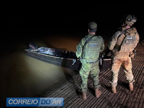 A Polícia Federal, com apoio da Polícia Militar do Paraná, apreendeu, nessa terça-feira (10/2), uma embarcação oriunda do Paraguai que realizava o descarregamento de fardos contendo entorpecentes na margem brasileira, em Missal/PR. Na ação, dois homens de cidadania paraguaia foram presos em flagrante.