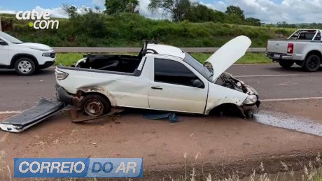 Picape tem roda arrancada em capotamento na BR-467 em Cascavel