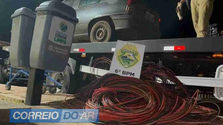 No interior do carro, os policiais encontraram cerca de 200 quilos de fios de cobre furtados, possivelmente oriundos de alguma estação de energia ou usina de energia solar. O veículo foi guinchado e, juntamente com a fiação, encaminhado à 50ª Regional de Flagrantes de Cascavel.