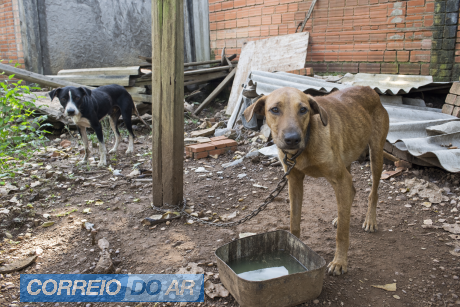 De acordo com a Polícia Militar, a equipe foi acionada por meio de denúncia anônima, relatando que um cachorro estaria preso por corrente durante todo o dia, exposto ao sol, sem acesso a água limpa e alimentação adequada, além de permanecer em meio a entulhos. A denúncia também apontava a presença de outro cão no local, que aparentava estar abaixo do peso.
