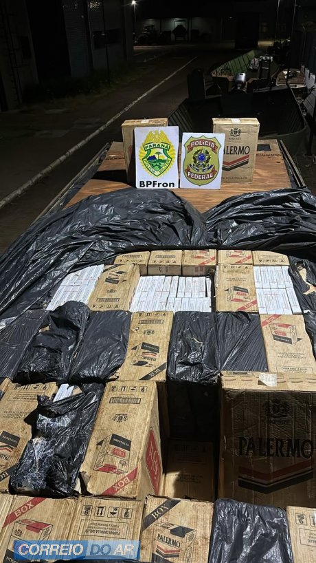 Polícia Federal e BPFRON realizam apreensão de caminhão carregado com cigarros paraguaios em Mercedes/PR