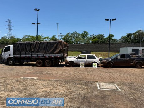 Nesta sexta-feira (05/12), no âmbito da Operação Protetor, Policiais Federais do NEPOM/PF e Policiais Militares do BPFRON/PMPR realizavam patrulhamento na área rural do Distrito de Porto Mendes, em Marechal Cândido Rondon/PR, quando visualizaram, às margens de um porto clandestino, um caminhão M. BENZ ACCELO 1316 contendo em sua carroceria cerca de 100 caixas de cigarros de origem estrangeira. Dois outros veículos, um VW/GOL e um GM/MONTANA, que em tese estariam auxiliando no transporte do material ilícito até o caminhão, também foram localizados nas imediações. Foram realizadas buscas na região com o intuito de localizar os responsáveis pelos veículos e pela carga, porém nenhum suspeito foi encontrado.