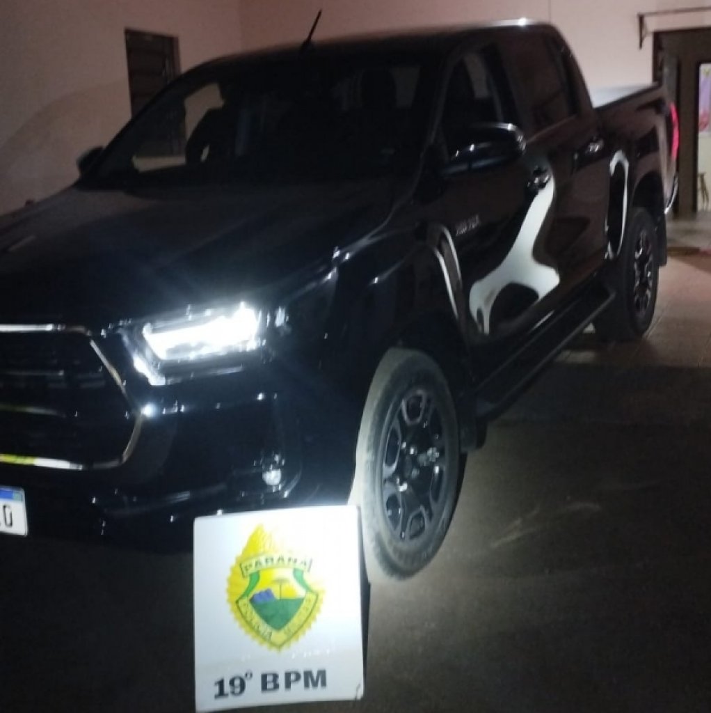 Uma caminhonete Toyota Hilux, que havia sido furtada em Toledo, foi recuperada pela Polícia Militar na noite de domingo (20), em Guaíra. Quatro pessoas, incluindo três menores de idade, foram detidas na ação, que ocorreu durante a Operação Barreira.